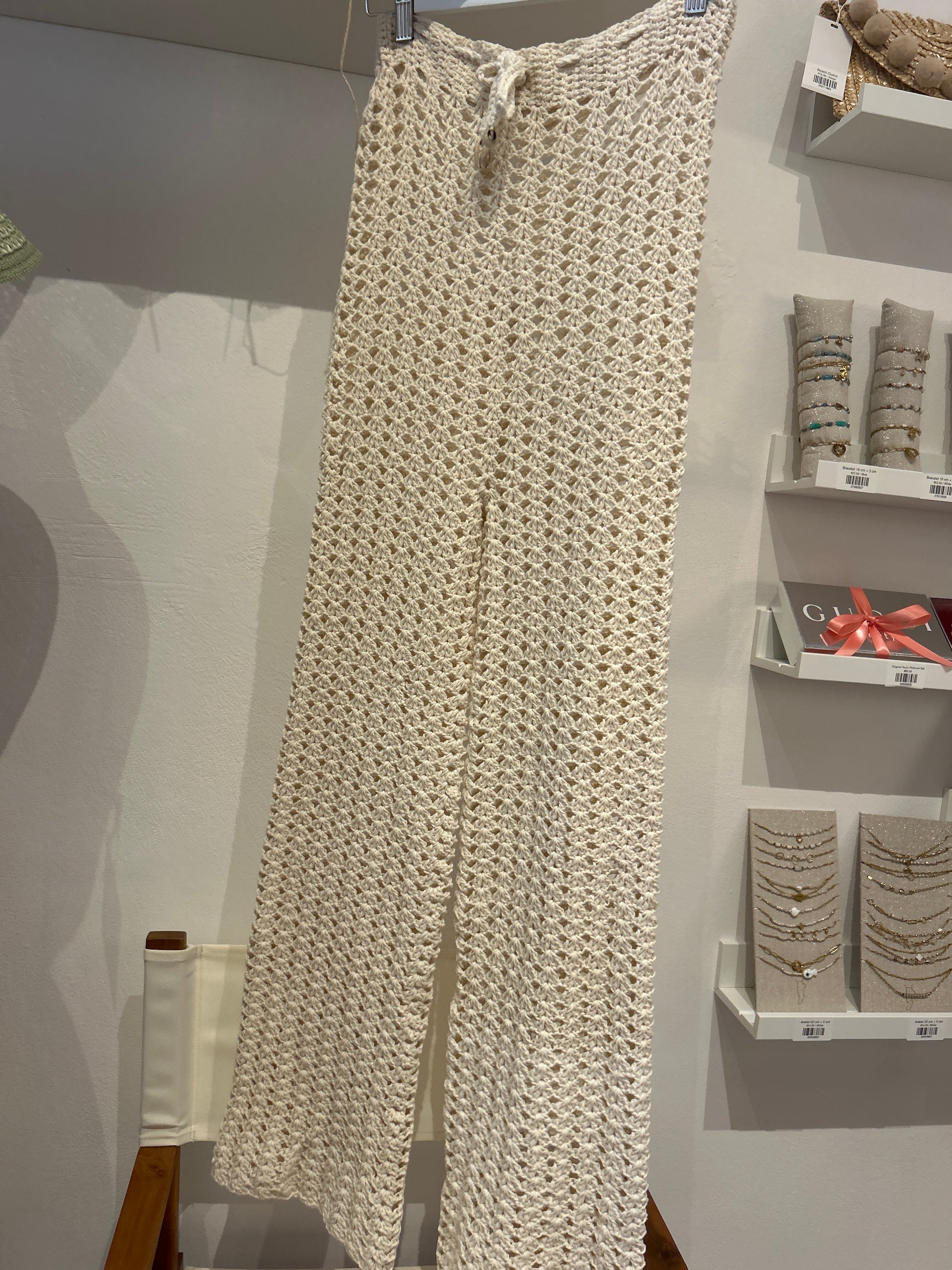 Pantalones de crochet hechos a mano en blanco roto Unica