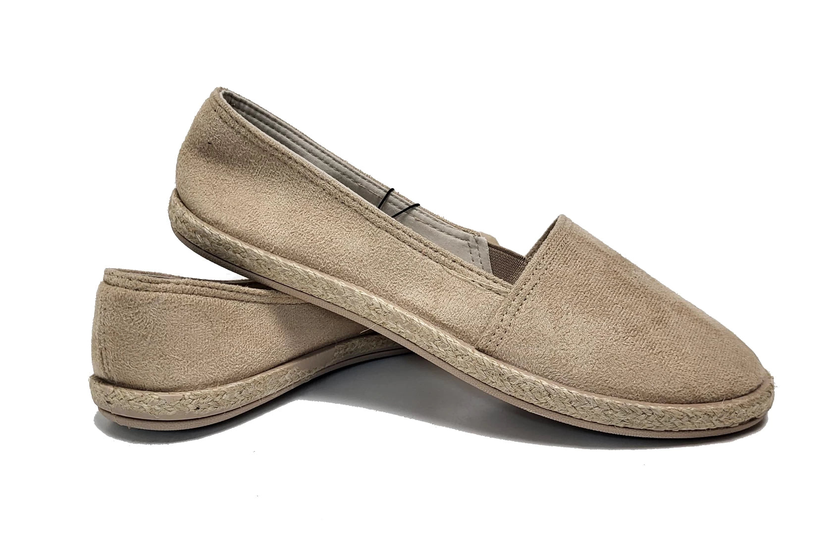 Espadrilles in drie verschillende kleuren: beige, marineblauw en oudroze. Verkrijgbaar in de maten 37, 38, 39 en 40.